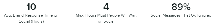 De acuerdo con un estudio realizado por Edison Research, el 42% de los consumidores que tratan de ponerse en contacto con una marca, producto o empresa a través de los medios sociales para servicio al cliente esperan una respuesta en 60 minutos y 32% esperan respuesta en 30 minutos máximo.