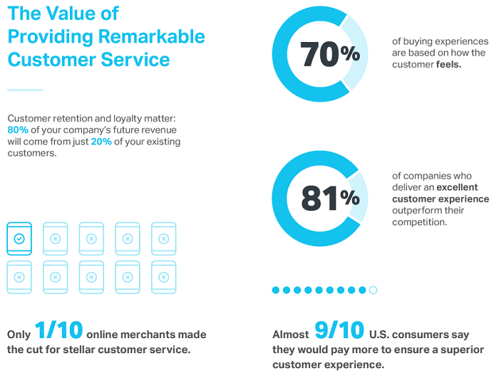 Tu negocio depende de clientes felices y satisfechos. No olvides la estadística de que es 6-7 veces más caro adquirir nuevos clientes que mantener los un negocio tiene. El servicio al cliente de calidad puede afectar directamente a los ingresos.