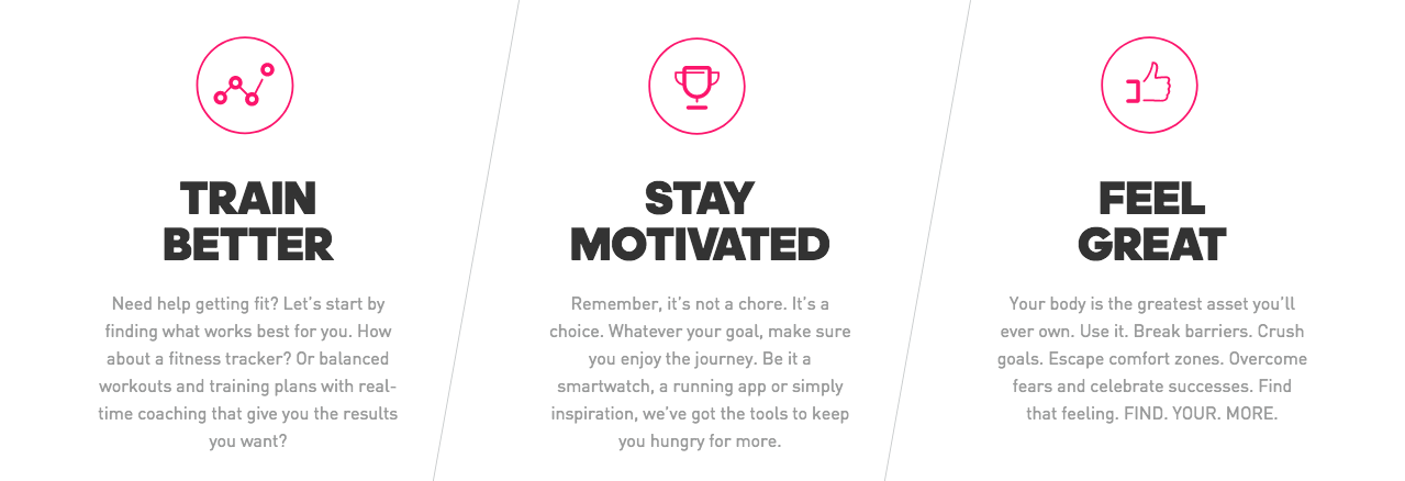 La app está basada en tres principios: Entrena mejor, sigue motivado y siéntete mejor.