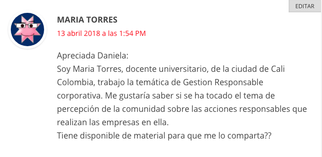 Puedes también verlo claramente en el siguiente comentario dejado en un blog corporativo. Maria ha notado que Daniela escribió el artículo que fue de su interés, tiene una duda al respecto, pero sabe que hay alguien que puede resolverla. Decide escribirla en los comentarios y en ese instante la relación se vuelve algo personal.