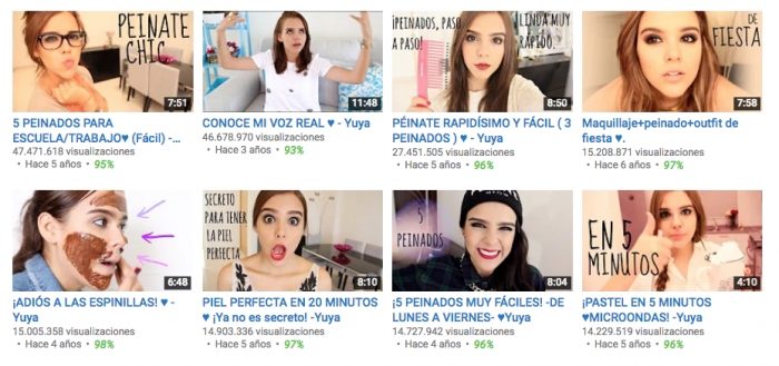 Esto significa que los videos que debes hacer NO deben centrarse en tu marca o producto, sino en tu usuario, a fin de que este se enamore de ellos y regrese una y otra vez a consumirlos. Estos son los videos más exitosos de esta YouTuber: