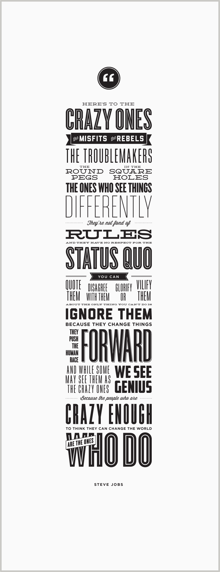 Here’s to the crazy ones, el espíritu de Steve Jobs, inmortalizado en un poster tipográfico - Luis Maram