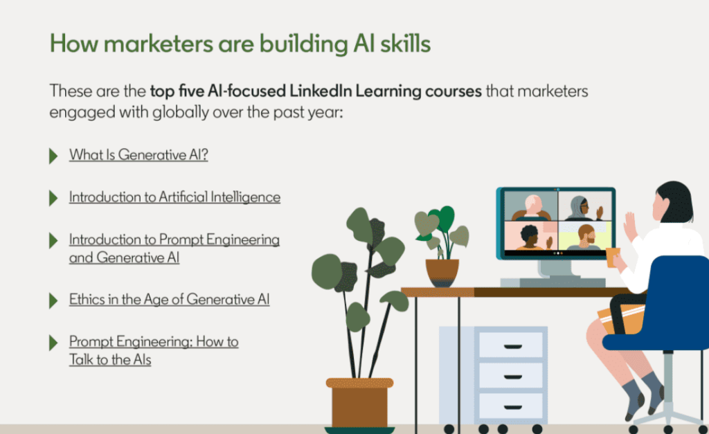 Los cursos más buscados en Linkedin el año pasado respecto del tema de la IA fueron: