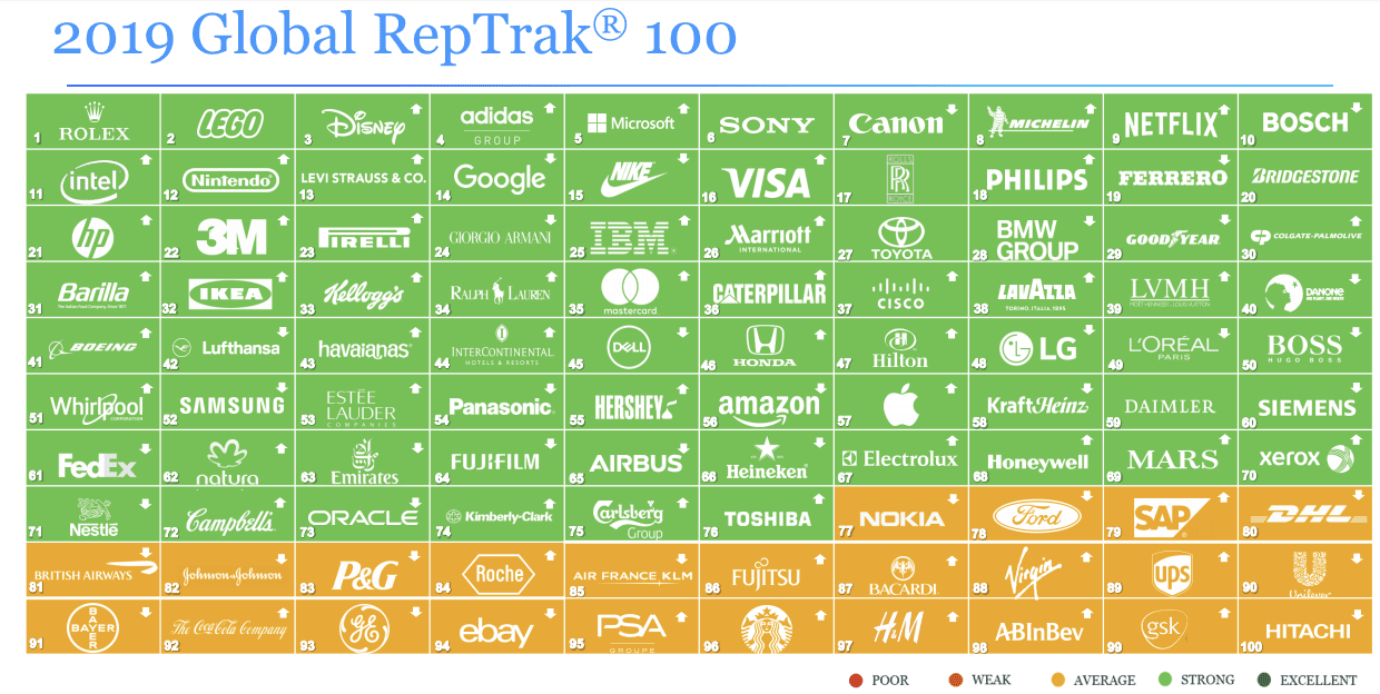 Una vez dicho todo lo anterior, y aclarada la importancia de la reputación de marca, podemos echar ojo directamente a las empresas con mejor reputación corporativa en México, 2019, de acuerdo con el Reputation Institute.