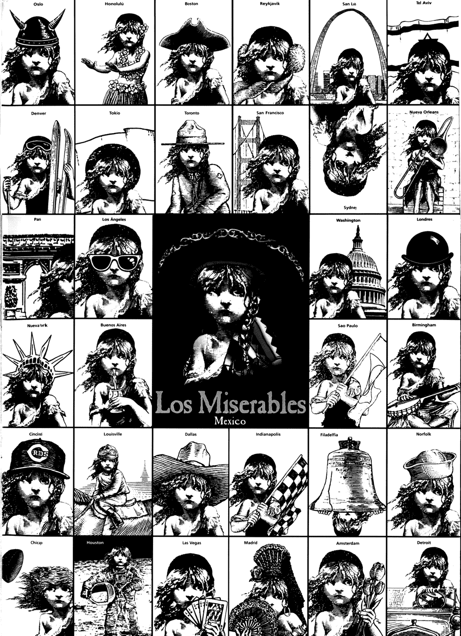 El marketing de la obra si bien es respaldado por un gran producto, lo es también por un intenso branding que ha sabido adaptar el rostro de Cosette a cada una de las regiones donde se ha presentado. Aquí, el fastuoso trabajo de clase mundial.