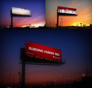 Los Huskers son el equipo de fútbol de Nebraska, y es común para mostrar apoyo al equipo, la frase «Bleeding Husker Red» (sangrando rojo Husker). El First National Bank fue justo lo que realizó, verdaderamente hizo sangrar a un espectacular. Por supuesto que alguien de afuera de la ciudad no comprenderá mucho el mensaje, pero para los habitantes del lugar, sin duda se torna un buen lazo emocional y reconocen al banco como un patrocinador del equipo… uno que sangra con él. En la publicidad de hoy, los anuncios no bastan, la seducción es imprescindible. [tti link=» Twittea esta frase»]En la publicidad de hoy, los anuncios no bastan, la seducción es necesaria.[/tti]