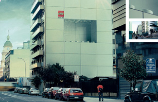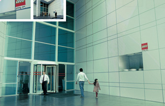 Tremendo concepto éste de colocar gráficos para simular que tanto el interior como el exterior del edificio están formados por piezas de Lego. El responsable: Ogilvy & Mather de Santiago.