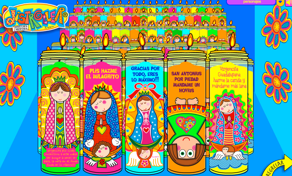 Por supuesto que la enorme aceptación de estos diseños en el mercado, no puede desperdiciarse y es casi una obligación, el generar otros desarrollos de marketing… la diversificación de la línea se vuelve un «must.» Por esta razón no es de extrañarse que ahora desde el mismo site de Distroller, uno pueda enviar postales electrónicas a sus conocidos, que incluyan deseos típicos que se le piden a Dios y a los santos como «un milagrito, un novio o incluso, más lana.»