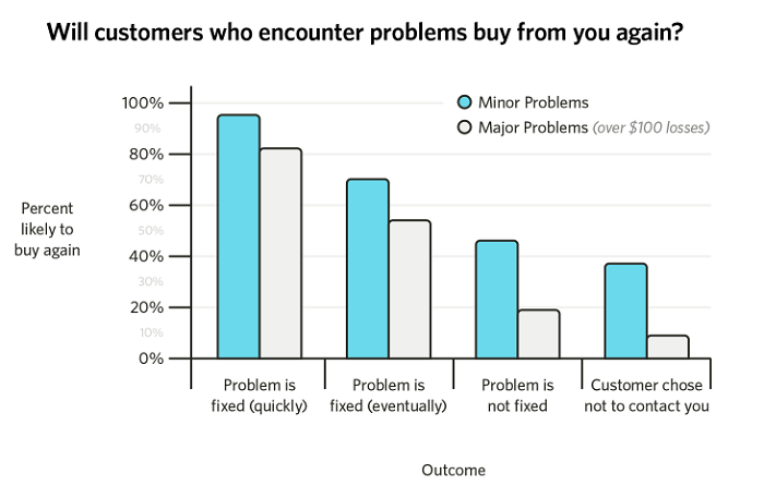 Un cliente insatisfecho contará a 9-15 personas sobre su experiencia. Alrededor del 13% de los clientes insatisfechos cuentan a más de 20 personas. – Oficina de Asuntos del Consumidor de la Casa Blanca.