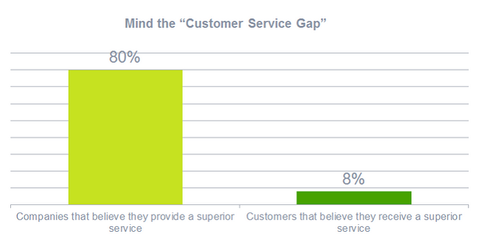 Lamentamos lo sucedido no es servicio al cliente, es solo perder el tiempo del cliente y del negocio. Mira la brecha entre empresas que creen que hacen un buen trabajo de servicio al cliente y las que en verdad lo hacen de acuerdo a los clientes. ¿En cuál estaría la tuya?