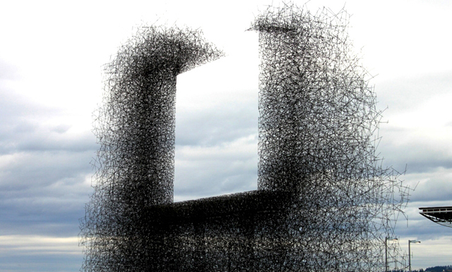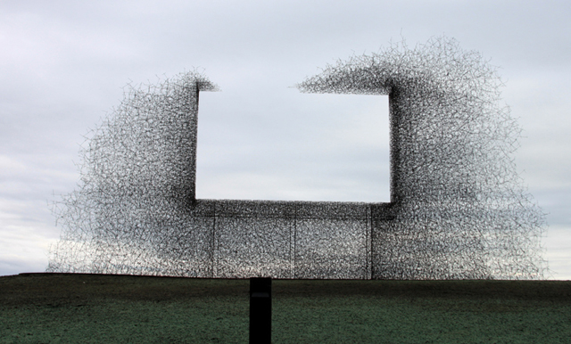 El gobierno de Canadá comisionó a Lead Pencil Studio para hacer una obra de arte en la frontera con Estados Unidos. La empresa de arte y arquitectura creó este outdoor excepcional. Llamado Non-Sign II, el diseño es una joya de arte urbano, un entramado de varillas de acero inoxidable que forman una cartelera comercial tradicional en su espacio negativo.