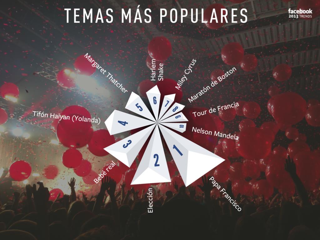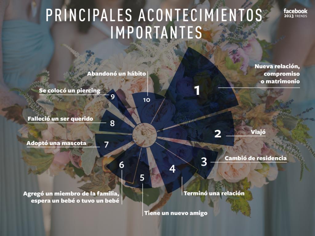 Top life events y check-ins: Qué acontecimientos y lugares generaron el mayor número de posteos y check-ins en 2013 y, a partir de ahí, se utilizaron los datos para crear clasificaciones globales y nacionales.