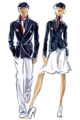 Ralph Lauren diseñó el uniforme para el equipo estadounidense con un estilo clásico y elegante, que ensalza los colores de la bandera americana. Con un look retro inspirado en las Olimpiadas de 1948 (la última vez que Estados Unidos compitió en Inglaterra), los conjuntos lucen soberbiamente sobrios. Tanto el atuendo masculino como el femenino ostentan la insignia oficial de los Juegos Olímpicos y el logo de la marca, y se completan con una boina azul marino, adornada con rayas blancas y rojas.