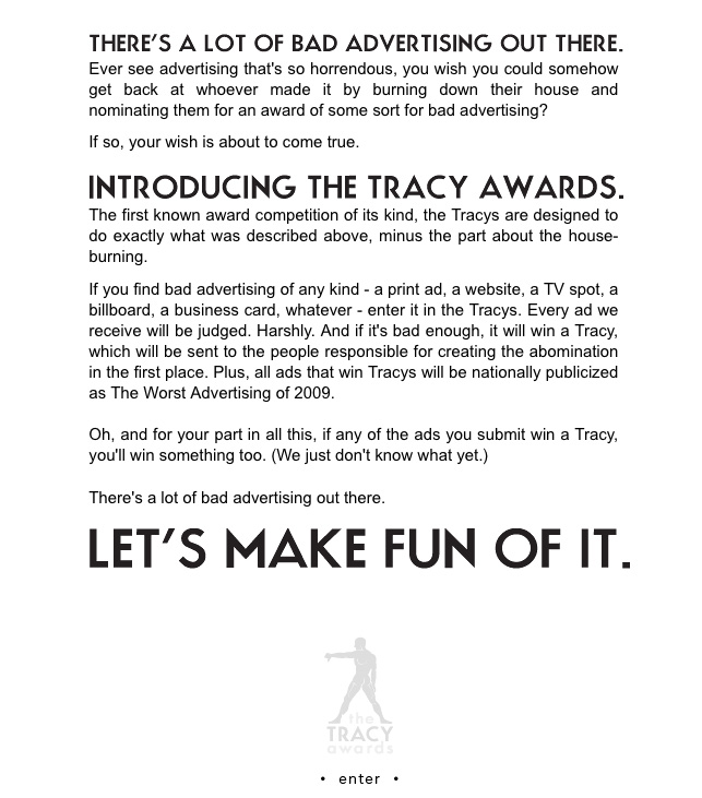 En este contexto, Crowell Advertising, una agencia de Utah, ha decidido lanzar un evento anual de publicidad llamado los Tracy Awards, mismo que premiará lo peor de la publicidad.