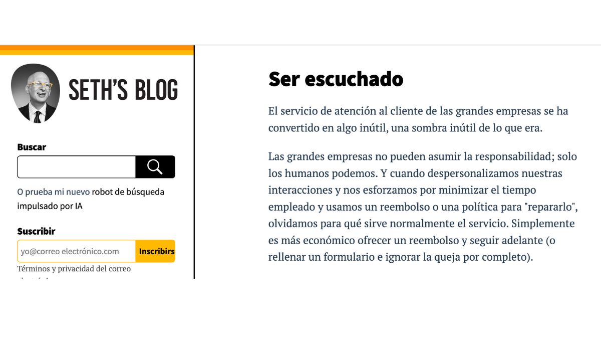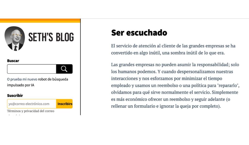 La IA es neutra. Tu marca no. Humaniza. Provoca. Empatiza. El tono emocional es irremplazable… y ese sigue siendo el gran diferenciador que pocos han comprendido. NO se trata de redactar diferente. Se trata de tener personalidad. Abre el blog de Seth Godin, lee 2 o 3 de sus notas, Inmediatamente evrás que su estilo es único. ¡Eso es lo que necesitas!