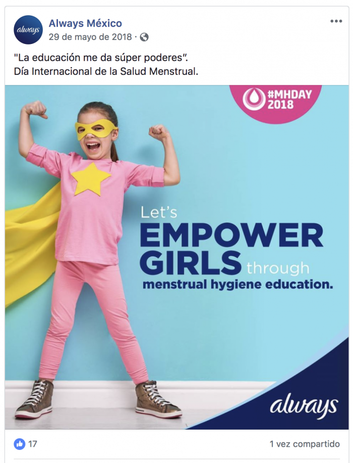 En este ejemplo, es claro que Always está buscando fortalecer la confianza y estima de sus audiencias a través de generar contenidos de empoderamiento.