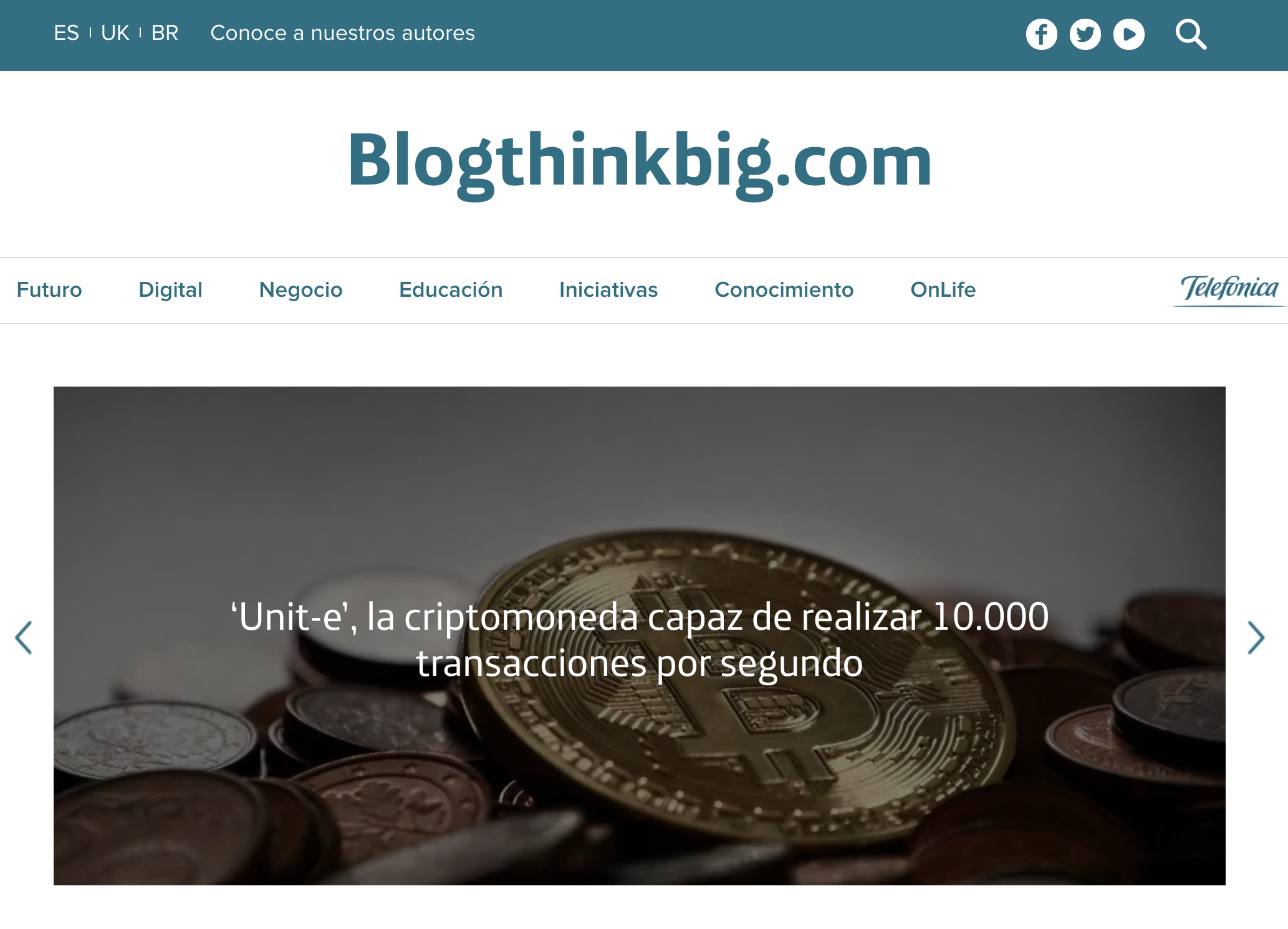 En un tercer ejemplo, ThinkBig es el sitio de contenidos de Telefónica, compañía enfocada en telecomunicaciones; el portal está enfocado a promover los temas de innovación y tecnología, posicionado a la marca como experta en ese nicho.