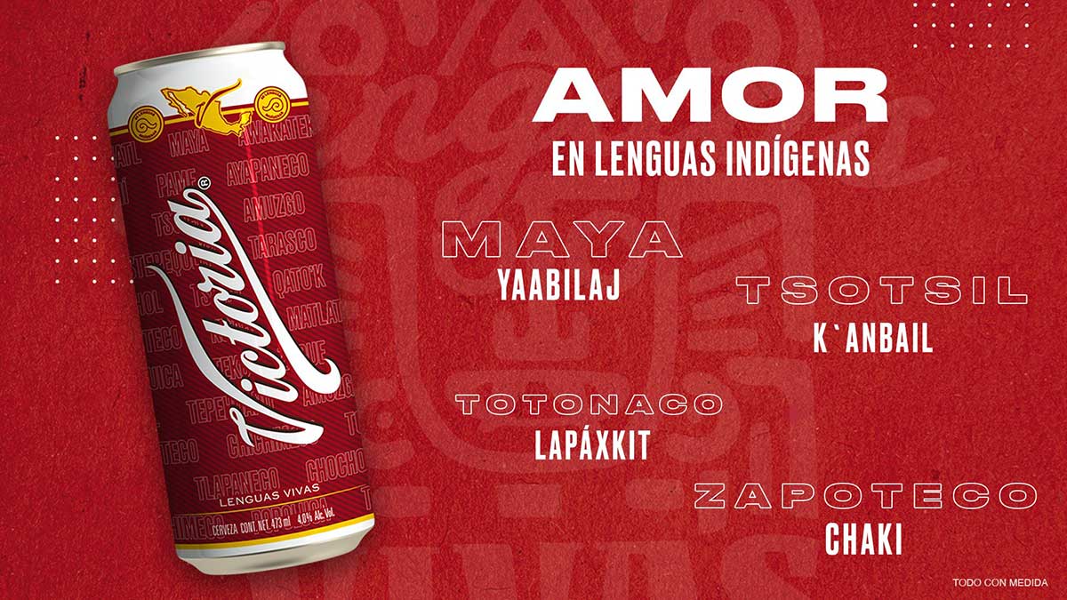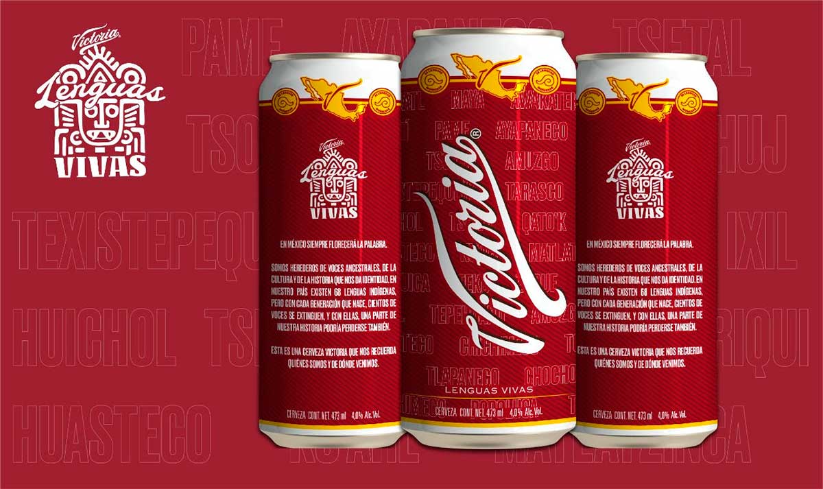 Las latas de Cerveza Victoria fueron traducidas a diferentes lenguas indígenas, y al reverso se puede leer un texto que busca concientizar a las personas y darle el lugar que se merecen todas las lenguas.