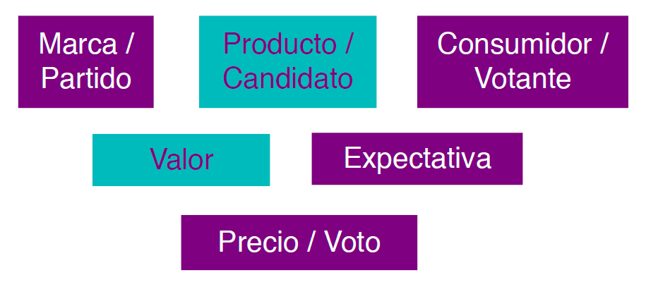 Del mismo modo ocurre, por ejemplo en la política. Las marcas-partidos tienen una serie de productos-candidatos que generan en los votantes una expectativa durante de las campañas.