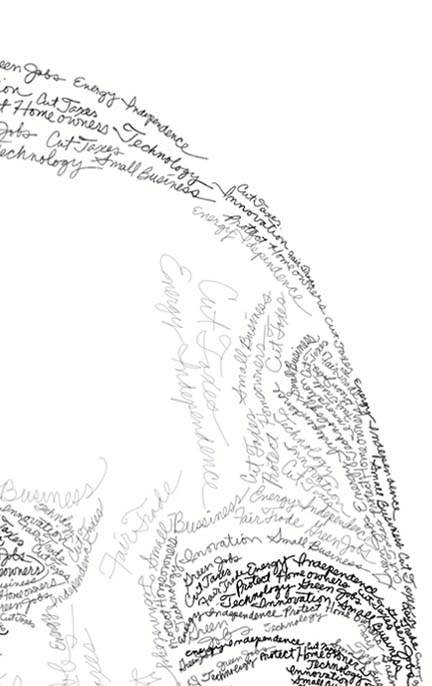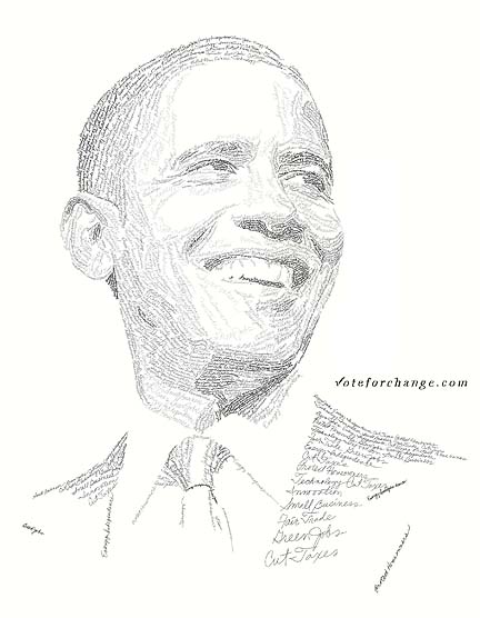 En realidad es caligrafía, pero es una belleza de ilustración. Finalmente llegó el día de las elecciones en Estados Unidos y con él este extraordinario diseño de Larry Roibal, quien generó un Obama hecho de caligrafía. Simplemente impresionante. Para asegurar la viralidad, Roibal no colocó la imagen completa en su site, sino que partió su obra original en 16 pedazos…