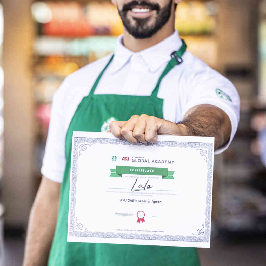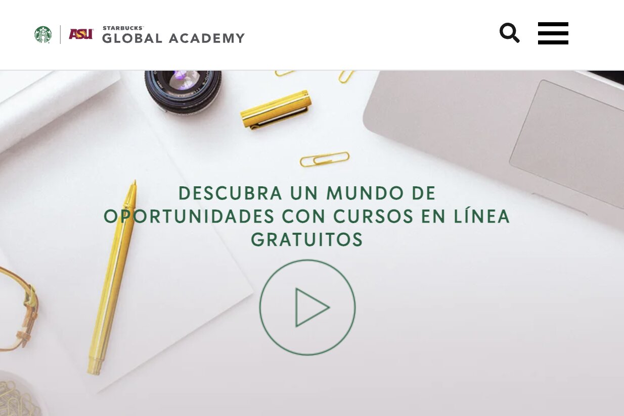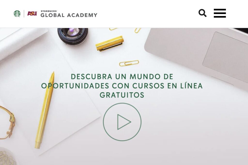 ¿Starbucks tiene una academia? ¿Puedo estudiar algo en ella? La Academia Global de Starbucks es un sitio que ofrece diferentes cursos… y no hablamos de programas improvisados, son contenidos desarrollados en colaboración con la Universidad Estatal de Arizona. Estos están disponibles en cualquier dispositivo, en cualquier momento y sin costo.