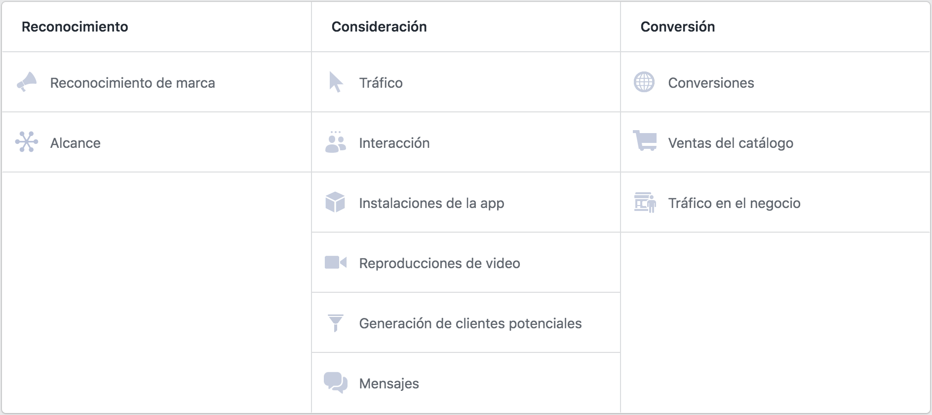 La ventaja es que los objetivos pueden ser muchos: alcance, tráfico, interacciones, reproducciones de video, conversiones, recibir mensajes, captar leads, etc.