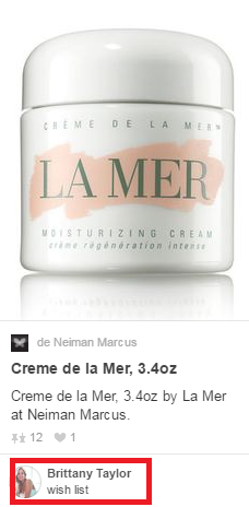 «Estamos viendo que los pinners guardan los productos; La Mer coloca en sus tableros nombres como Productos que necesito o Productos que quiero y guardan contenido sobre tips y trucos relacionados con sus productos» dice Kelly McDonnell, director de global marketing social y digital para La Mer. «Cuando los pinners guardan las imágenes en sus tableros públicos saben que sus seguidores y otros pinners los van a ver y de esa manera están recreando el Word of mouth en el que La Mer esta fundado.»