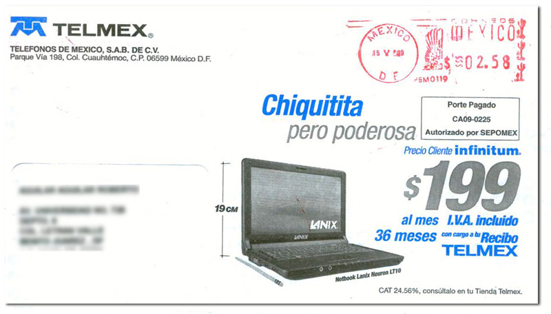 El ejemplo aquí presentado es un buen caso. ¿Cómo publicitar los productos de la tienda Telmex sin necesidad de imprimir y hacer llegar un folleto al usuario? La respuesta es: utilizando mis propios canales de distribución. Si la empresa ya hace sobres para enviar recibos telefónicos e incluso los imprime ¿Por qué no agregar ofertas de la tienda, foto incluída?