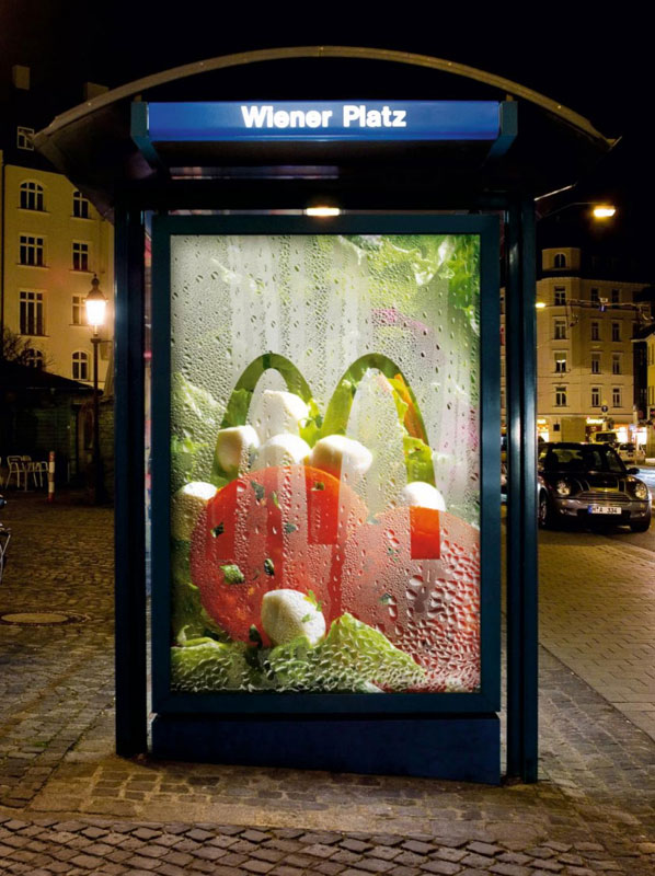 Innovador outdoor para publicitar las ensaladas de McDonald’s. Justo cuando uno piensa que la creatividad se ha desgastado en un medio en particular, llega un desarrollo como éste que simplemente nos hace sonreir de gusto.