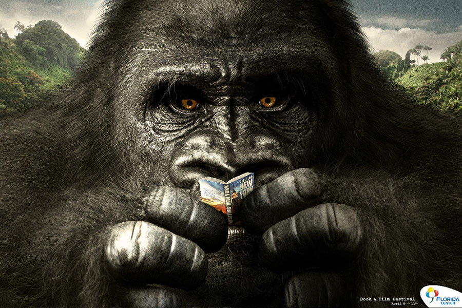 El diseño es para el Florida Center Book & Film Festival, y reune en un sólo concepto los dos elementos a publicitar: Cine y Libros.