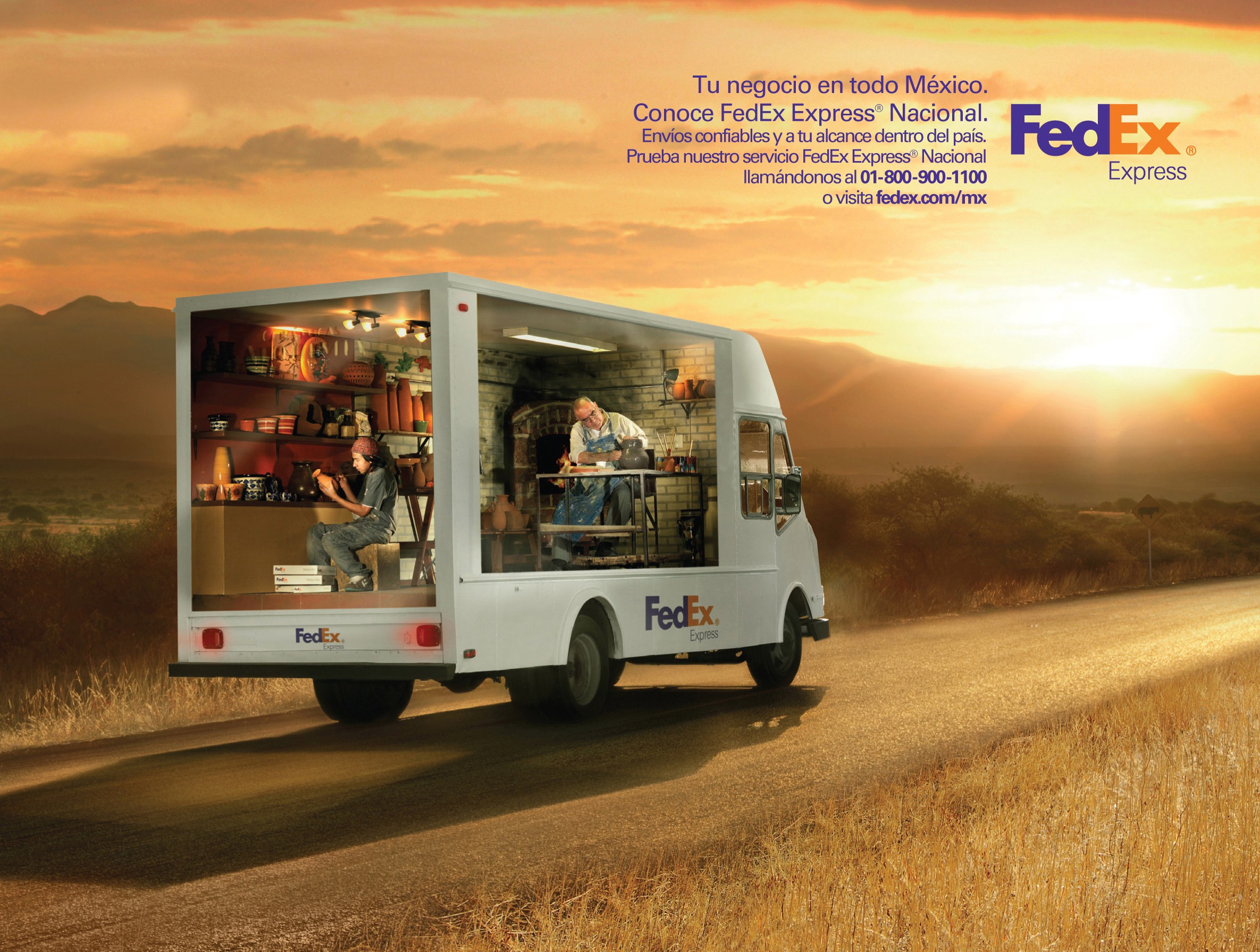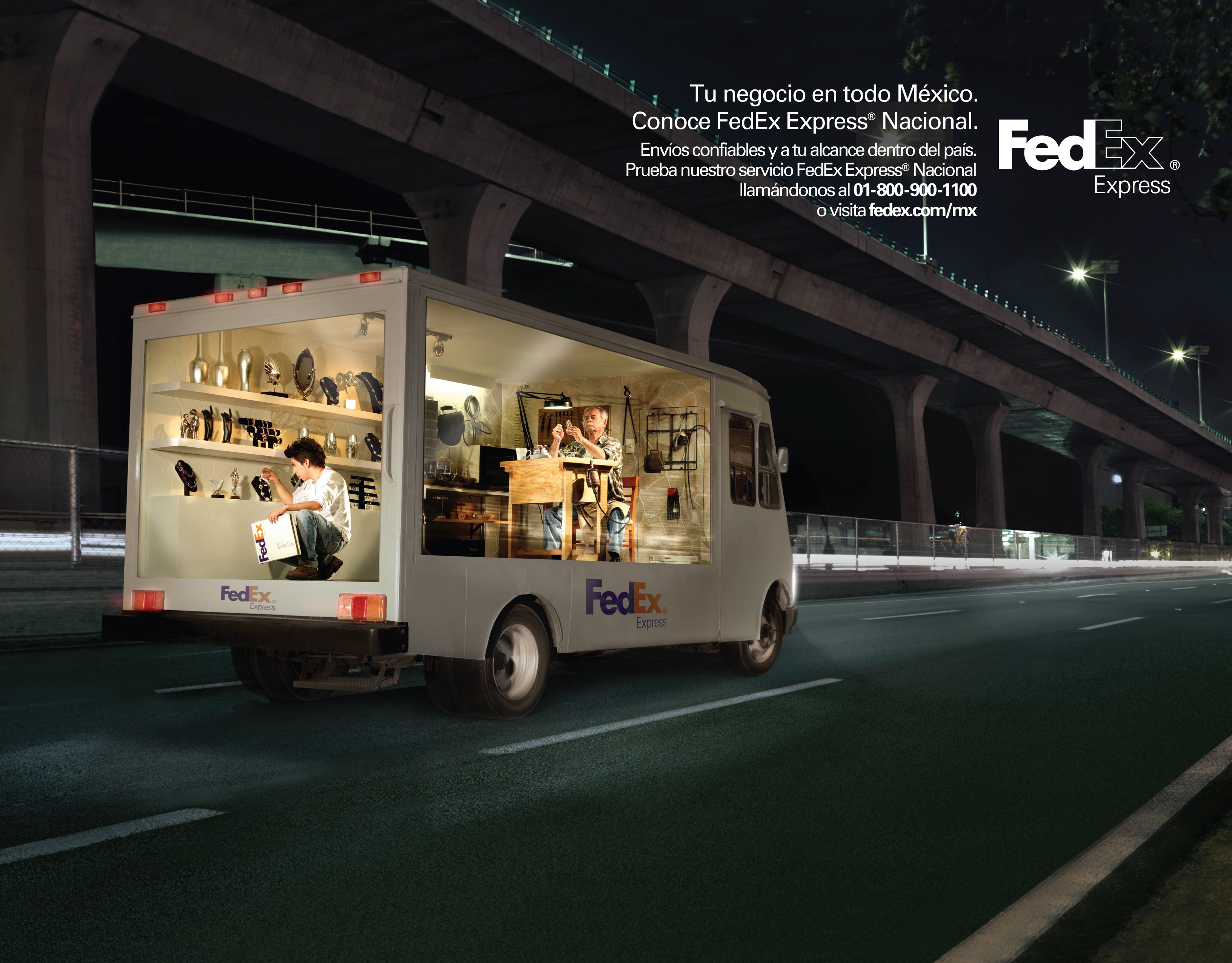La campaña consiste en lanzar a las calles, camionetas diseñadas como “Negocios Móviles” que buscan comunicar que gracias al apoyo de FedEx los empresarios pueden llevar sus negocios a cualquier parte de México. Cuando uno lo ve, posiblemente no comprenda al 100% de qué va, sin embargo, el reforzamiento aparece en revistas, y medios exteriores como vallas, espectaculares, parabuses, y el Metrobús de la Ciudad de México. Los gráficos son exactamente la imagen de los vehículos con los que uno se topa en la calle y hallan el anclaje en el copy: «Tu Negocio en todo México.» Así de sencillo, así de memorable.