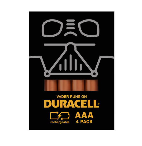 Aquí, un extraordinario trabajo de definición. Se trata de la obra de un estudiante. El brief era sencillo: Hacer que comprar baterías fuera tan divertido como comprar juguetes. La solución es un alarde de contundencia. Spencer Bigum, el diseñador, supo abstraer la esencia de cada personaje y la plasmó en un empaque. Vader, 3PO, Stormtrooper, HAL900, Daft Punk, Robocop.