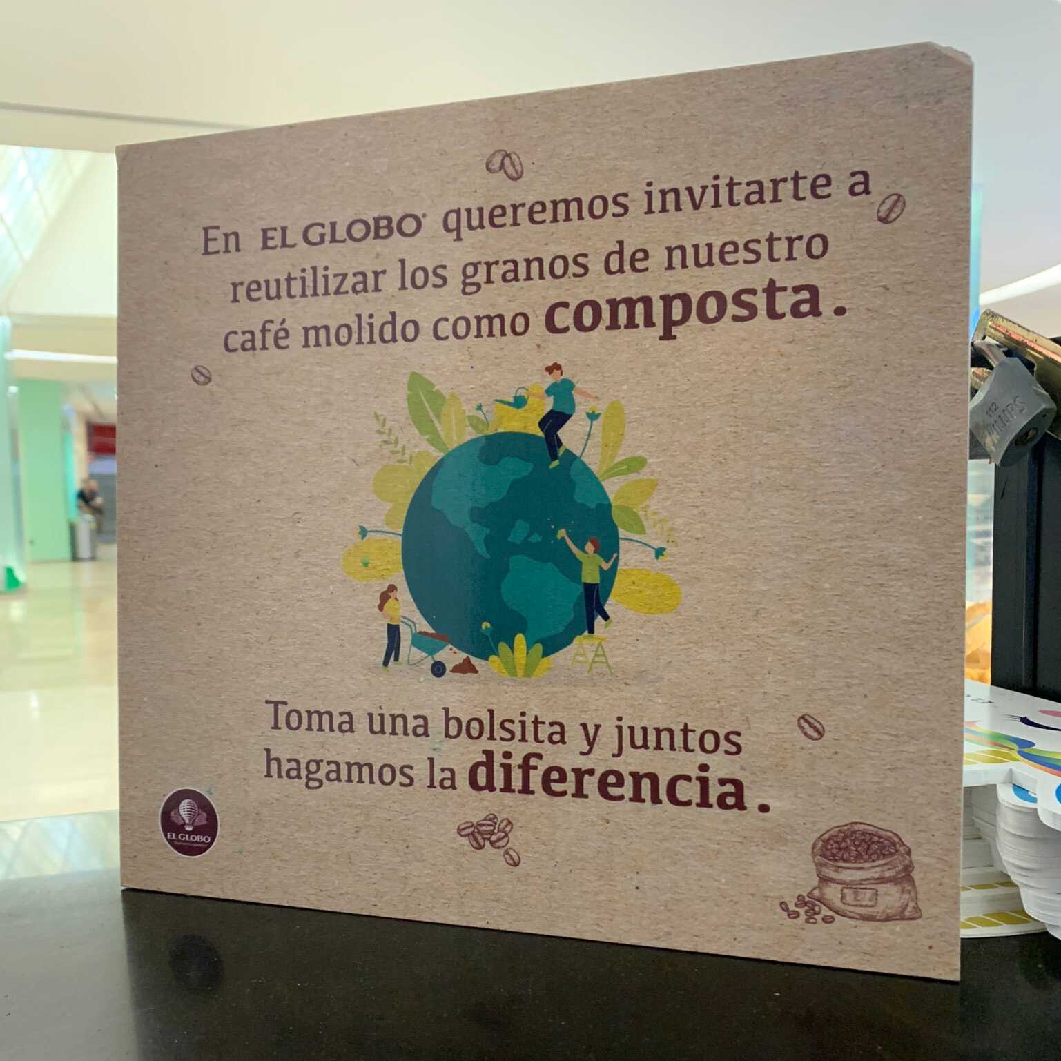 La afamada panadería / pastelería El Globo invita a sus clientes a tomar regaladas bolsas de granos de café utilizados en las bebidas.