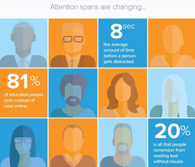 • La gente retiene el 80% de lo que ve, el 20% de lo que lee y el 10% de lo que escucha.