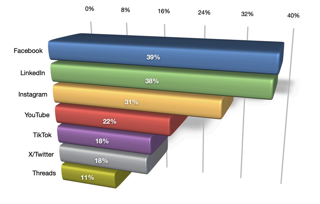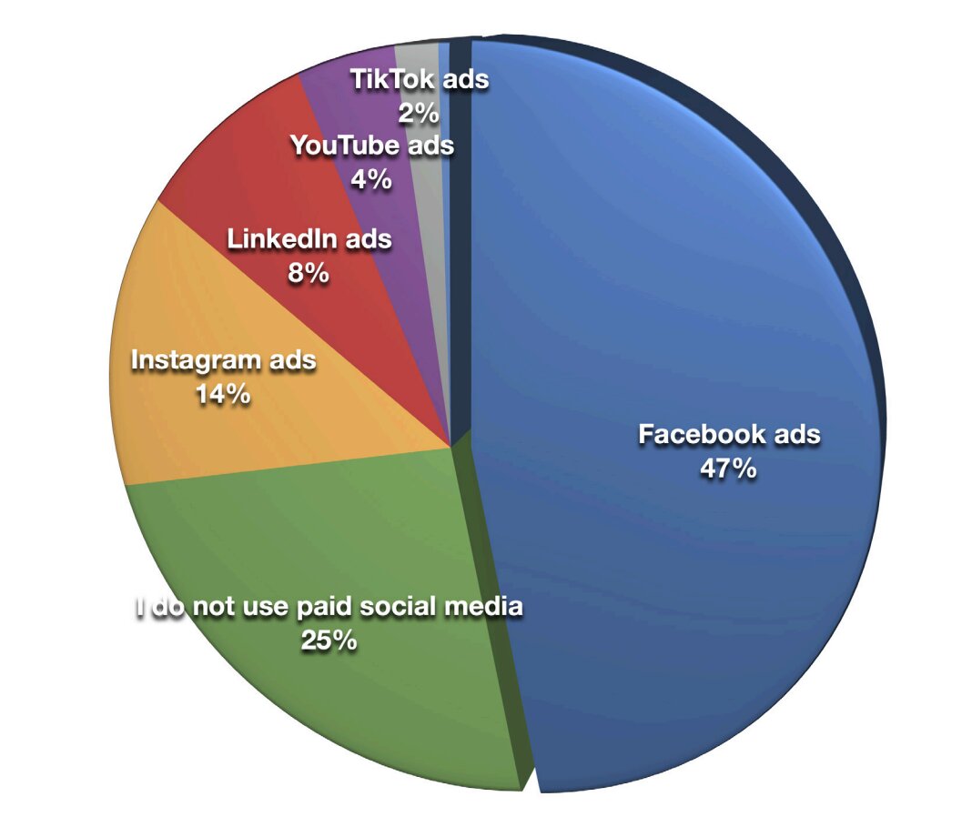 Es importante notar que 25% de las y los profesionales no pautan; que apenas 8% lo hacen en Linkedin (es muy caro) y un nimio 2% en TikTok.