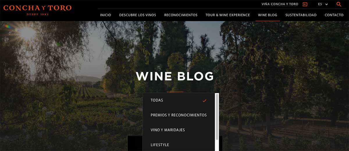 Como parte de su construcción de reputación de líder, Concha y Toro mantiene un blog en sitio, cuya misión de contenido versa así: