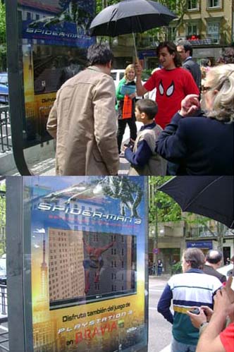 Durante los dí­as 4, 5, 8,10 y 11 de Mayo unas azafatas estarán junto a la marquesina ofreciendo la posibilidad a los transeúntes de jugar al juego de Spider-Man 3 para Playstation 3 con la mayor calidad FULL HD de Bravia. El resto del tiempo que no esté la azafata, la pantalla de estará emitiendo el trailer de la pelí­cula Spider-Man 3 en HD.