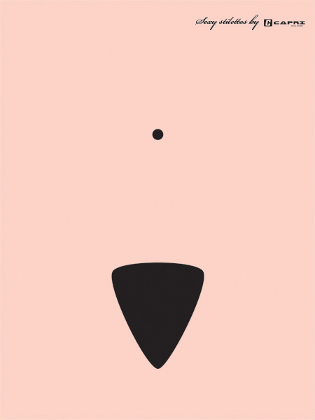 En este contexto nos llega este anuncio de Capri, quien publicita sus zapatos stiletto. El gráfico no puede ser más ad hoc, pudiendo leerse en dos sentidos: la huella del calzado y/o el sensual vientre de una mujer. Exquisito diseño; una pisada reticente, clara, convincente.