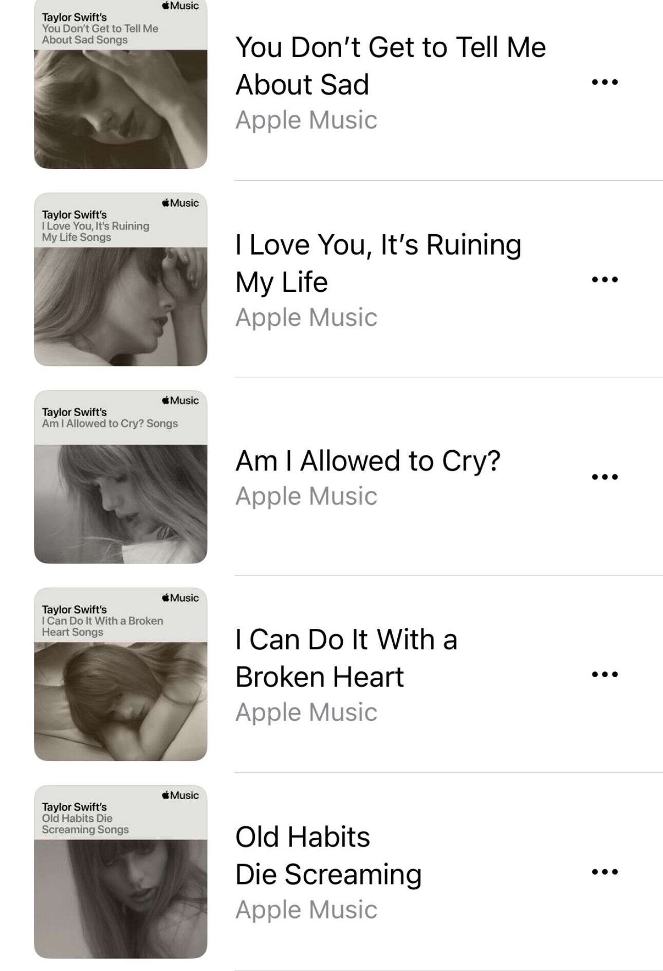 La intérprete desarrolló un conjunto de 5 listas de reproducción en Apple Music, haciendo un símil con las 5 etapas del duelo: la negación, la ira, la negociación, la depresión y la aceptación.
