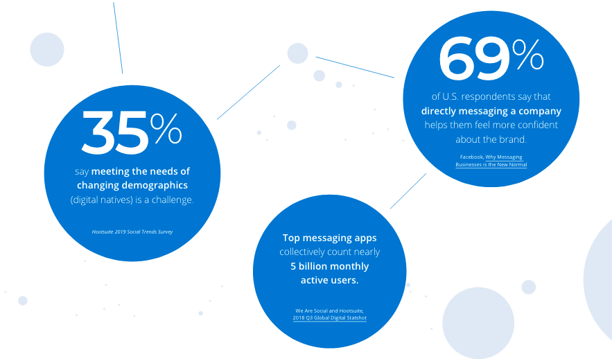 A medida que nos acercamos al 2019, 69% de los clientes prefieren enviar mensajes directos a una compañía pues los ayuda a sentirse más seguros con respecto a la marca.