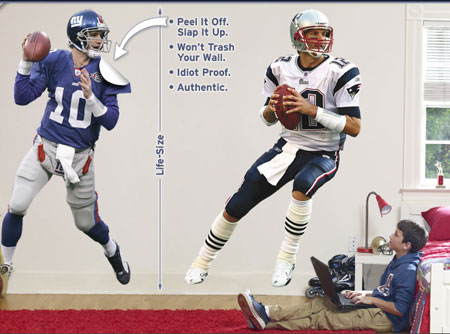 De modo que uno puede tener en el muro de su casa, estudio u oficina a Tom Brady y Eli Manning, estrellas del momento o a Maria Sharapova, David Beckham, Darth Vader, Spider-Man, Batman, los Simpson o Hannah Montana. La compañía es Fathead.