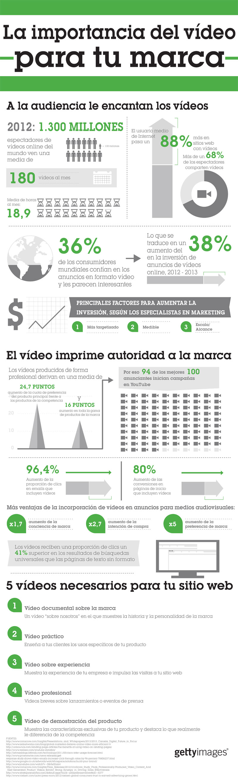 Finalmente mira esta infografía de GettyImages, donde se cruza el uso del video con los objetivos de marca; presta especial atención a los 5 videos que necesitas tener en tu site.