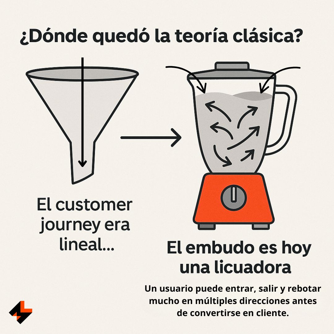 Como ya se explicó en artículos previos, el viaje del comprador dejó de ser un embudo para convertirse en una licuadora. Entrar y salir de canales es la norma, y la IA está en cada punto de ese viaje: desde el descubrimiento hasta la fidelización.